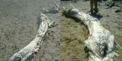 Напомним, что в Испании на берегу обнаружено морское чудовище. Размер необычного существа, которое уже пребывает на четвертой стадии разложения, составляет примерно 4 метра. Найденное существо в СМИ уже получило название – ''рыба-мутант''. Его сравнивают с знаменитым чудовищем с озера Лох-Несс. Довершением мистического образа существа стала часть его тела, которая была отделена от длинного торса и выглядела как 2 огромных рога.