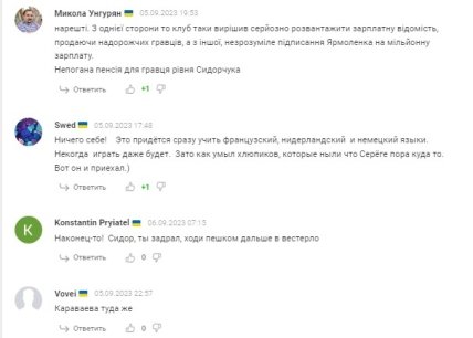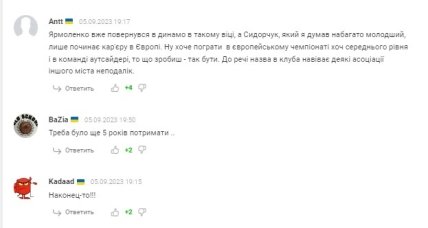 К слову, фанаты "Динамо" по-разному отреагировали на уход футболиста. Кто-то пожелал ему успехов, а кто-то обрадовался тому, что Сидорчук больше не будет играть за их любимую команду.