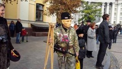 "Сегодня, в День защитника Украины, я намеренно вышел на улицы Киева. Это протест. А еще - напоминание, от кого должны защищать нашу Родину украинские солдаты", - заявил мужчина в маске Путина по имени Леонид. Также Леонид он отметил, что уже не первый раз выходит в праздничные дни в центр Киева, чтобы, по его словам, "показать всем истинное лицо врага". Угроз или негативной реакции от людей человек не ожидает.