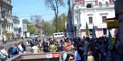 "Сейчас мне сообщают, что на Греческой площади задержали двух молодых людей с газовыми баллончиками "Терен". Они тоже доставлены в отделение полиции. Будут выясняться обстоятельства, почему и откуда они двигались, и какие у них были намерения", - сказал А.Костюк.