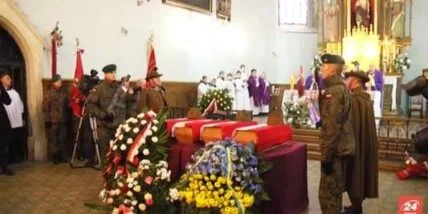 Торжественное перезахоронение останков 25 польских воинов, а также украинцев прошло на на Львовщине.