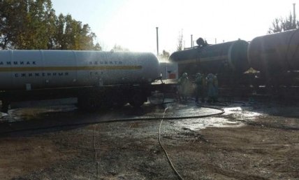 По предварительной информации, чрезвычайная ситуация произошла на территории одного из частных предприятий из-за разгерметизации запорной арматуры в 20-тонной автоцистерне во время налива аммиака.