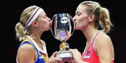 Чешка Андреа Главачкова и венгерка Тимея Бабош обыграли голландку Кики Бертенс и шведку Юханну Ларссон в парном финале Итогового турнира WTA в Сингапуре.