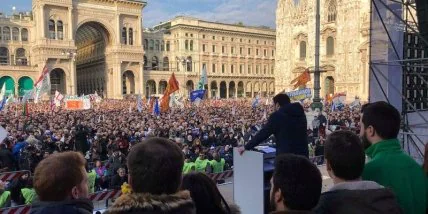 В то же время на главной площади Милана собрались около тысяч участников демонстрации "Лиги севера", которые ожидают ее лидера Маттео Сальвини.