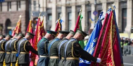 Во время парада ко Дню Независимости Украины глава государства вручил новые боевые знамена воинским частям.