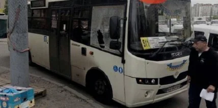 Водитель выбежал из своего автомобиля и решил разбить стекло "маршрутки".