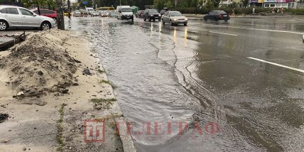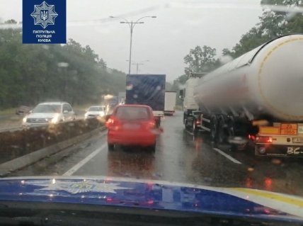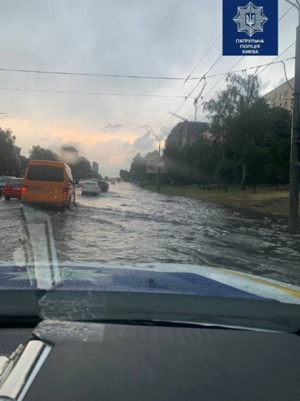 Огромное количество осадков привело к тому, что на проспекте Победы перекрыли движение в направлении на выезд с Киева. Из-за этого водители транспортных средств двигались резервным путем через улицу Василенко, но немного позже около 13:20 полиция Киева сообщила о том, что движение по проспекту возобновили.