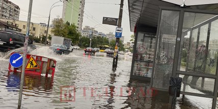 Во время ливня буквально парализовало движение на и так перегруженной транспортной развязке – пересечении ул.Борщаговской и Вадима Гетьмана (затопило участок дороги под Индустриальным путепроводом).