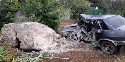Смертельное ДТП в Днепропетровской области: ВАЗ на полном ходу влетел в бетонный булыжник (фото)