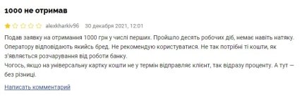"Операторы отвечают какой-то бред. Не рекомендую пользоваться. Не так нужны те деньги, как появляется разочарование от работы банка", — отметил пользователь alexkharkiv96.