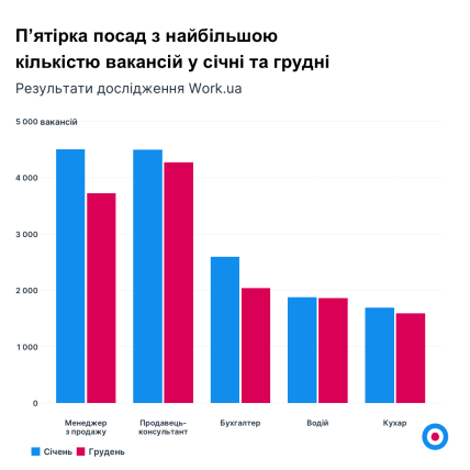 В январе 2023 года предложение на рынке труда оказалось рекордным, правда, это только с начала масштабной агрессии рф против Украины. Работодатели разместили почти 60 тысяч вакансий, побив тем самым рекорд октября 2022, когда их было более 56 тысяч.
