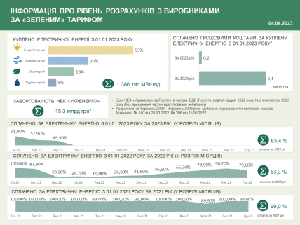 На первый взгляд предложение кажется разумным, ведь "Гарантированный покупатель" должен поставщикам "зеленой энергии" 15,3 млрд грн, причем за прошлый год он расплатился на 53,3%, а в 2023-м году платит 63,4% от необходимого.