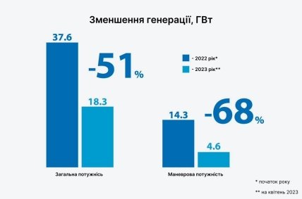 Помогает доклад Проекту развития ООН. В нем говорится, что по состоянию на апрель этого года рашисты повредили 45% (42 из 94) высоковольтных подстанций и 41 из 94 мощнейших трансформаторов. Влияние на украинскую энергосистему чрезвычайно. Мощность атомного поколения после оккупации крупнейшей в стране Запорожской станции упала на 44%. Тепловой – на 65%. Больше энергии в Украине производили атомные станции. Но тепловые может быть даже более важны, ведь за их счет в последние годы страна делала так называемое "маневрирование". Дело в том, что атомный энергоблок невозможно быстро ни включить, ни остановить. Хранить много электричества очень трудно.
