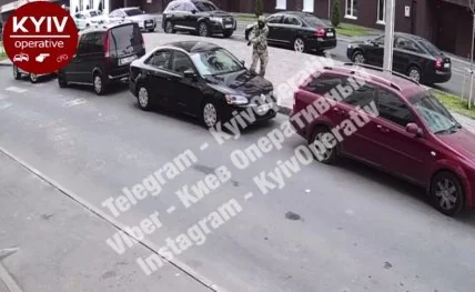 В соцсетях появилось видео, как одетый в камуфляж человек стреляет по Volkswagen и людям, которые в него садятся. Женщина и ребенок не пострадали. Судя по видео — нападавший поджидал жертв атаки.