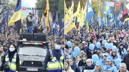Кроме того, в первых рядах присутствуют родственники погибших в русско-украинской войне ветеранов, представители "Нацкорпуса" во главе с лидером Андреем Билецким. Также в колонне шел Олег Тягнибок вместе с представителями ВО "Свобода".