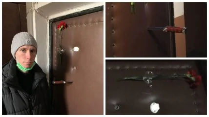 В Киеве активисту воткнули нож в дверь и оставили траурные цветы: подробности и фото