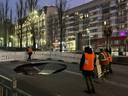 Многометровая яма образовалась посреди дороги в самом центре Киева: когда ликвидируют провал
