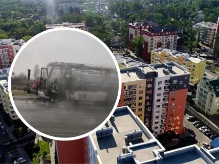 В пригороде Киева вспыхнул автобус с пассажирами (видео)