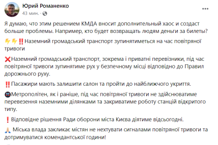 "Я думаю, что этим решением КГГА вносит дополнительный хаос и создаст больше проблем. Например, кто будет возвращать людям деньги за билеты?…", — написал он.