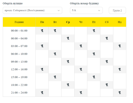 Вероятный график отключений для 2 группы в столице выглядит так: