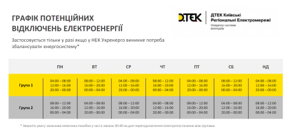Ранее НЭК ’’Укрэнерго’’ опубликовало вероятные графики отключений для Киева и Киевской области на 2 ноября, которые введены с 6:00 утра. После этого на основе ожидаемых ограничений от "Укрэнерго" компания ДТЭК "Киевские электросети" обнародовала расписание для столицы. Для 1 группы он выглядит так: