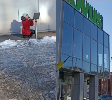 Вероятно, дома у нее в связи с отключением электричества не ловила сеть, и пришлось давать урок там, где вышло ее "поймать", — прямо у супермаркета.
