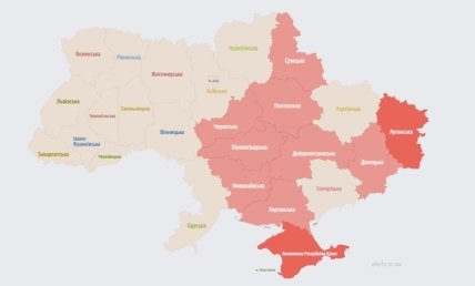 "Телеграф" публикует карту воздушных тревог в Украине на момент публикации новости.
