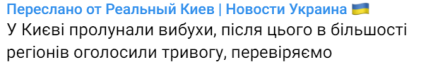 В то же время популярные украинские Telegram-каналы сообщают, что, предварительно, взрывы, которые слышали жители Киева, никак не связаны с российскими ракетными обстрелами.
