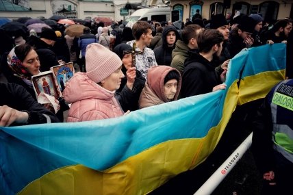 11:11 — На территорию Лавры пришли патриотически настроенные мужчины, один из них имеет травму ноги и на костылях, он может быть военным, они скандируют "Долой московских оккупантов", "Прогоняем московскую сволочь", "Слава Украине!" их пытается перекричать женщина в белой куртке. На месте находится полиция.