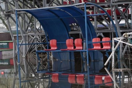 На опубликованных нами кадрах можно увидеть, как футбольный стадион на пляже "Венеция" теперь действительно напоминает итальянский город. При этом вода продолжает прибывать.