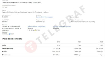 Кстати, Светлану Дубовую и Софию связывает участие в совместном бизнесе — в семейной компании "Династия Дубовых" (уставный капитал — 10 млн грн ). Информацию об этом можно найти в данных Opendatabot.