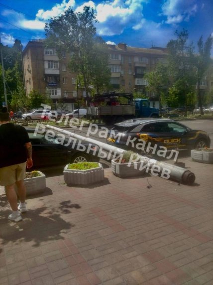 В центре Киева на проезжую часть рухнул фонарный столб. В связи с этим движение на некоторых участках дороги было временно перекрыто.