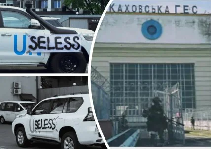 Киевские активисты "обновили" внедорожники ООН и ВОЗ, которые стояли на одной из киевских парковок, сделав на них надписи "uselles" (в переводе — бесполезные). Таким образом они выразили свое возмущение безразличию Организации Объединенных Наций к подрыву Каховской ГЭС российскими оккупантами.