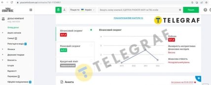 Следовательно, YouControl советует обратить особое внимание на работу этого предприятия. Финансовый показатель ООО-шки указан следующим образом: "вероятность неблагоприятных финансовых последствий высока". А финансовая устойчивость отмечена как "Неудовлетворительный уровень". При этом размер уставного капитала фирмы составляет почти 30 млн гривен.