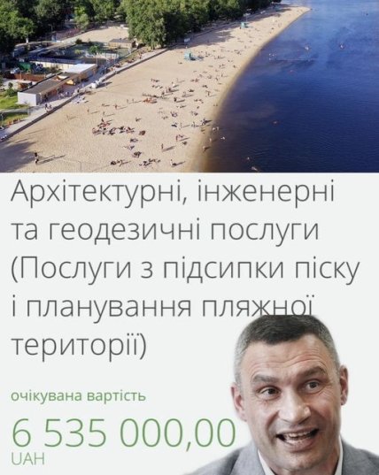 В частности, он обратил внимание на тендер, организованный коммунальным предприятием "Плесо". Коммунальщики планируют потратить 6,5 миллиона гривен на столичные пляжи, которые официально этим летом никто не открывал. В тендере указано, что указанная сумма КП "Плесо" пойдет на закупку пески и планирование пляжных зон.