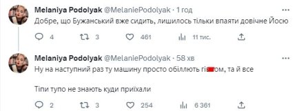 На это уже обратила внимание волонтер Мелания-Мария Подоляк, которая подчеркнула, что активисту пришла повестка в суд за то, что он всего лишь наклеил бумажку на машину. Кроме того, она предположила, что в следующий раз машину попросту обольют фекалиями.