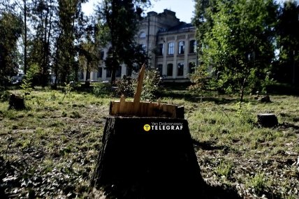 В учебном заведении успокаивают, что работы по благоустройству согласовали с "Киевзеленстроем", на месте старых деревьев высадят новые