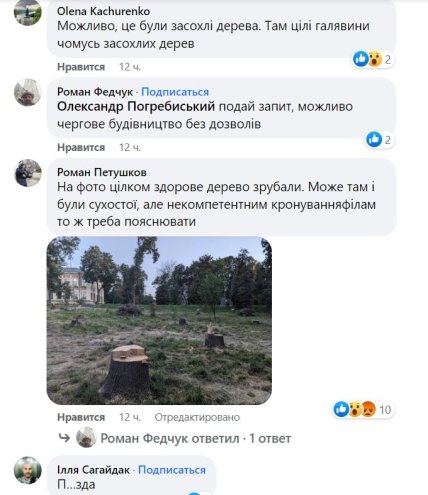 Меньше читайте что-то по типу "МАФы там поставят" или "заправку откроют". Зраду в соцсетях любят разводить по любому поводу, пожалуй, мы такой народ. Все нормально, чистка будет продолжаться, потому что очень много старых деревьев, некоторые из них мертвы. Вспомните, на прошлой неделе, когда были сильные ветры, в городе деревья падали на машины и крыши домов. Нам не нужно, чтобы людей в парке привалило. Тем более, что было предписание от "Киевзеленстроя". Это не мы сами себе что-нибудь придумали. Эти деревья мы не можем пилить без разрешения, – отметил он.