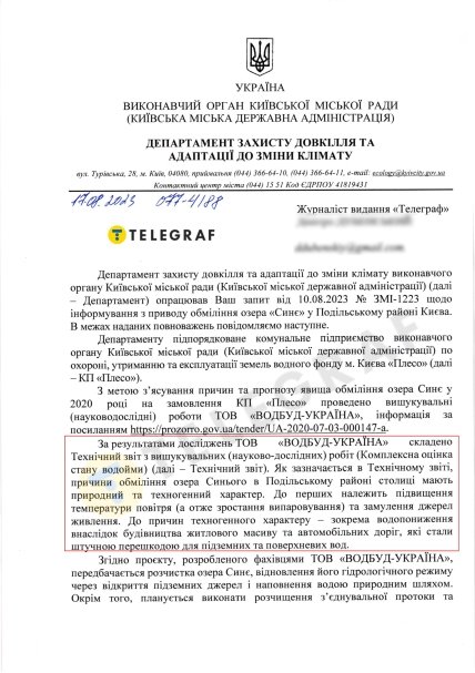 Впрочем, как сообщили в департаменте защиты окружающей среды и адаптации изменения климата КГГА в ответе на информационный запрос "Телеграфа", ситуацию с выделением средств на спасение водоема уже удалось разблокировать, а речи о застройке территории вообще нет.