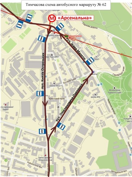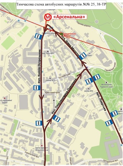 Отметим, что с 1 сентября движение наземного пассажирского транспорта по ул. Князей Острожских будет закрыт участком от ул. Емельяновича-Павленко до ул. Ивана Мазепы в направлении ст.м. "Арсенальная".