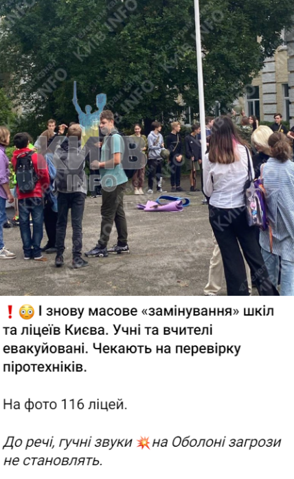Стоит добавить, что в сентябре это далеко не первый случай с заявлениями о минировании. Подобное произошло 1 сентября. Тогда полиция Киева получила сообщение о том, что все учебные заведения города были якобы заминированы. Детей и учителей в целях безопасности эвакуировали.