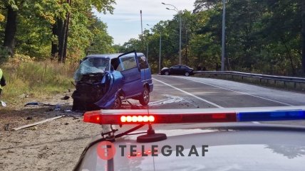 На выезде из Киева на Литовском проспекте (бывшее Минское шоссе) произошло лобовое столкновение между грузовиком и микроавтобусом из-за чего один человек погиб.