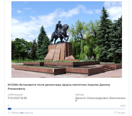 По мнению автора петиции, на месте памятника Щорсу необходимо возвести монумент королю Даниилу Романовичу, который был королем Руси с 1253 года, политическим деятелем, дипломатом и великим полководцем.