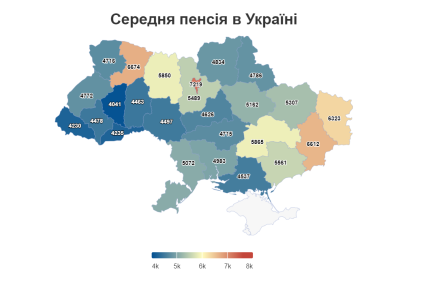На данный момент в восьми регионах Украины средняя пенсия является выше средней по стране. Самую же большую пенсию получают в Киеве — она равна 7 219 гривнам. Это на 35% больше средней пенсии по стране. В Киевской области также одна из самых больших пенсий в Украине — здесь пенсионеры получают 5489 гривен.