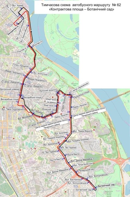 Также возобновляет работу и автобус № 62, который будет курсировать по временной схеме, действовавшей до старта ремонтных работ. Он движется по маршруту "Контрактовая площадь — Ботанический сад".