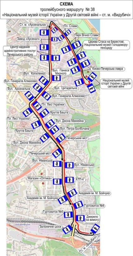 В Печерском районе столицы на улице Князей Острожских завершился ремонт инженерных сетей. Благодаря этому возобновляют работу троллейбус №38 и автобус №25 — они возвращаются к постоянным схемам движения.