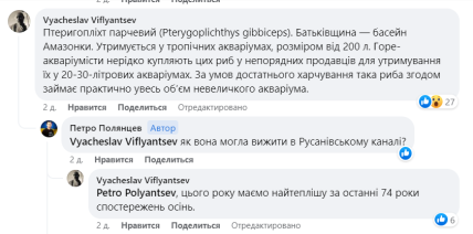 Информация о выловленной в канале рыбе появилась в группе "Животный мир Украины" в Фейсбук. Пользователям соцсети удалось идентифицировать рыбу и установить к какому семейству она принадлежит.