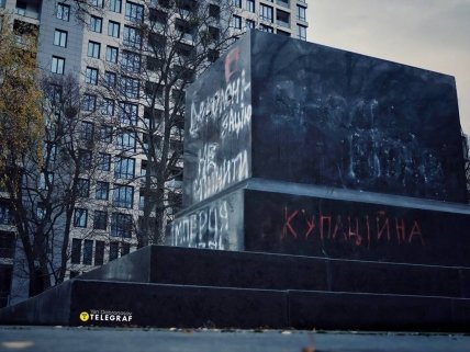 Локализовался постамент в сквере на Брестском проспекте напротив парка Киевского политехнического института. Кроме того, что его не раз обливали краской в знак пренебрежения и "сигнала" властям, на нем еще и писали многочисленные требования по демонтажу.
