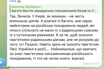 "Только к концу второго года полномасштабной войны до Кабмина дошло, что Пушкин не является частью украинской культуры и чиновники согласовали инициативу Киева о сносе этого памятника. И на этом спасибо.