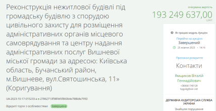 Так, КП "Главное управление коммунального хозяйства" Вишневого горсовета Бучанского района Киевской области 10 ноября по результатам тендера заказало ООО "Максима Буд" реконструкцию здания за 193 миллионов гривен. Об этом сообщается в системе "Прозорро".
